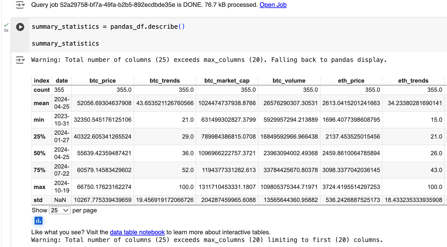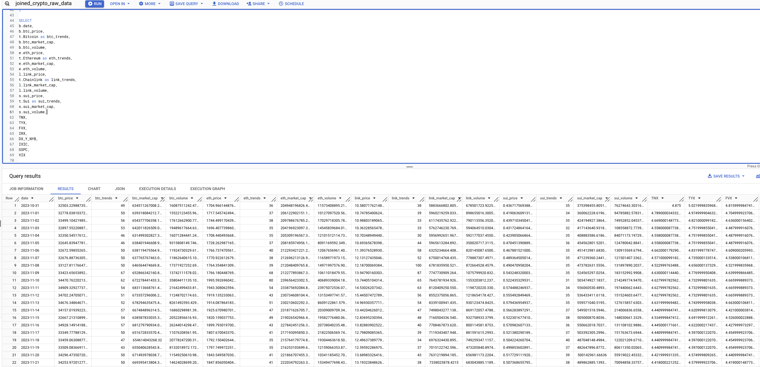 So, where does all this leave us? Well, we’ve successfully assembled a dataset that includes search trends and traditional financial indicators alongside our target crypto coins.