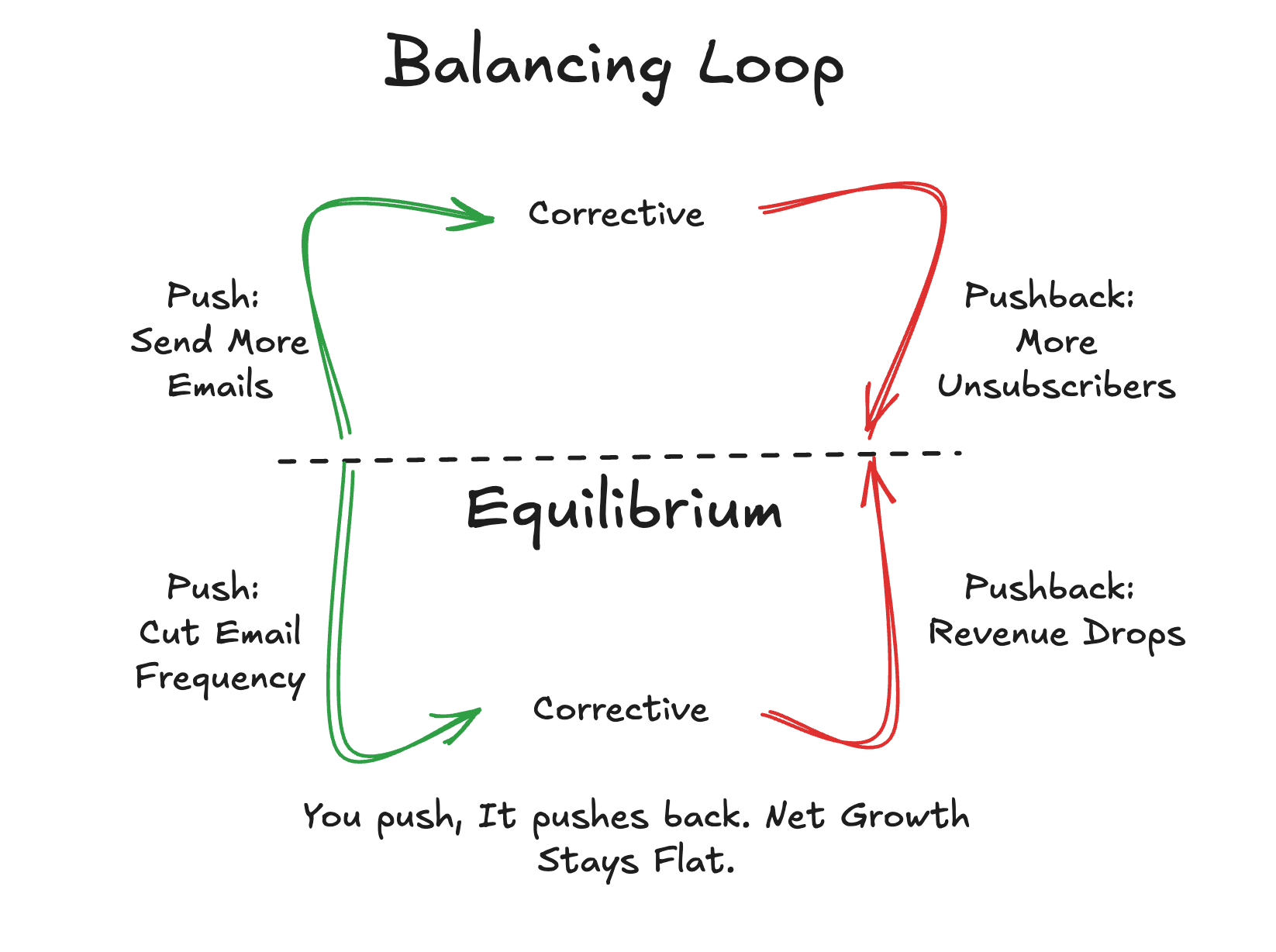 You try to grow a channel, it resists. You push harder, it pushes back. Your team increases email frequency to boost revenue; unsubscribes rise to match, net growth stays flat.