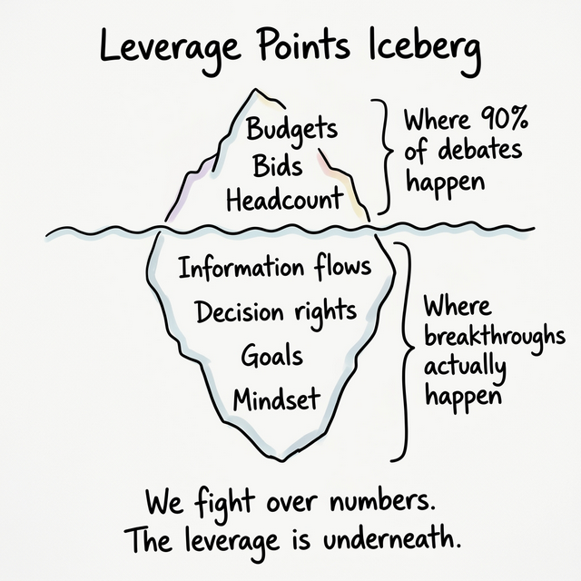 | Leverage points | Budgets sit at the bottom. Mindset sits at the top |