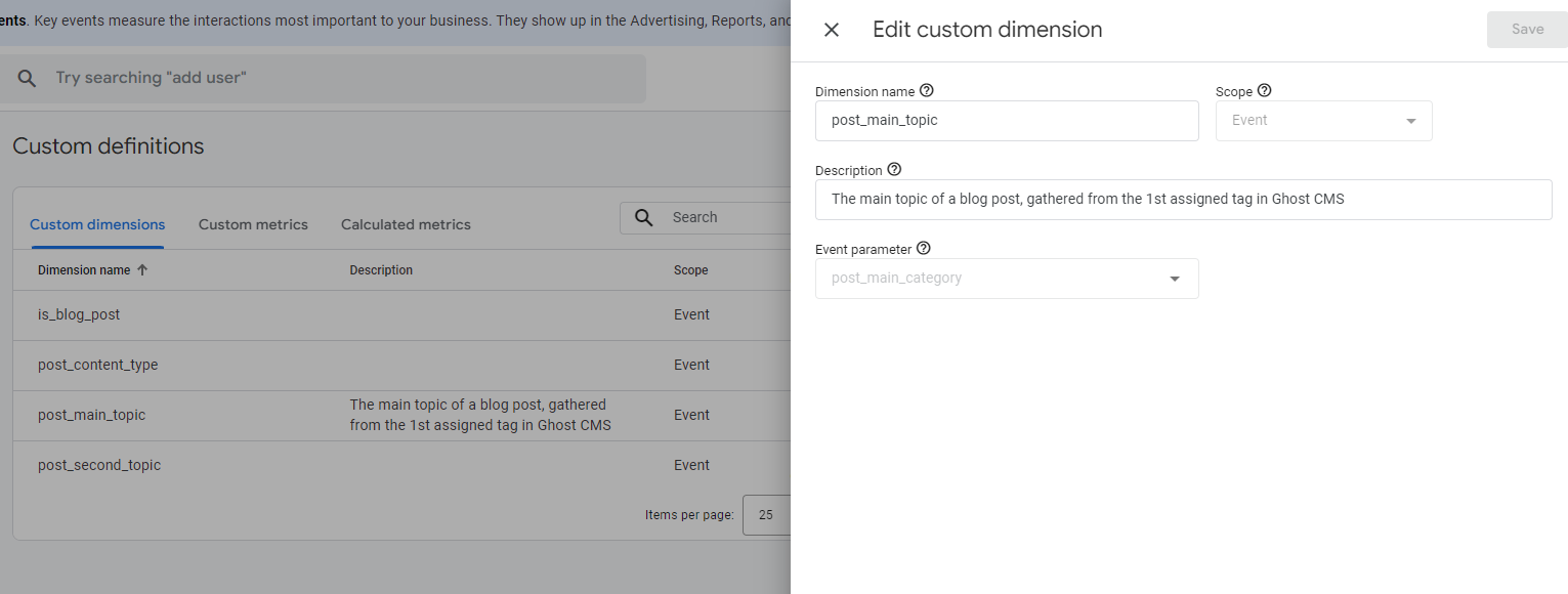 - Go back to GA4 > Admin > Data Display > Custom Definitions